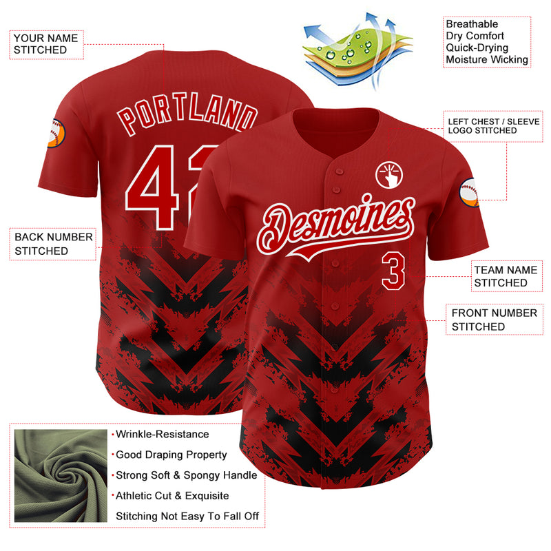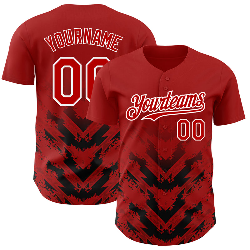 Custom Red Black-White 3D Pattern Design Abstract Arrow Authentic Baseball Jersey