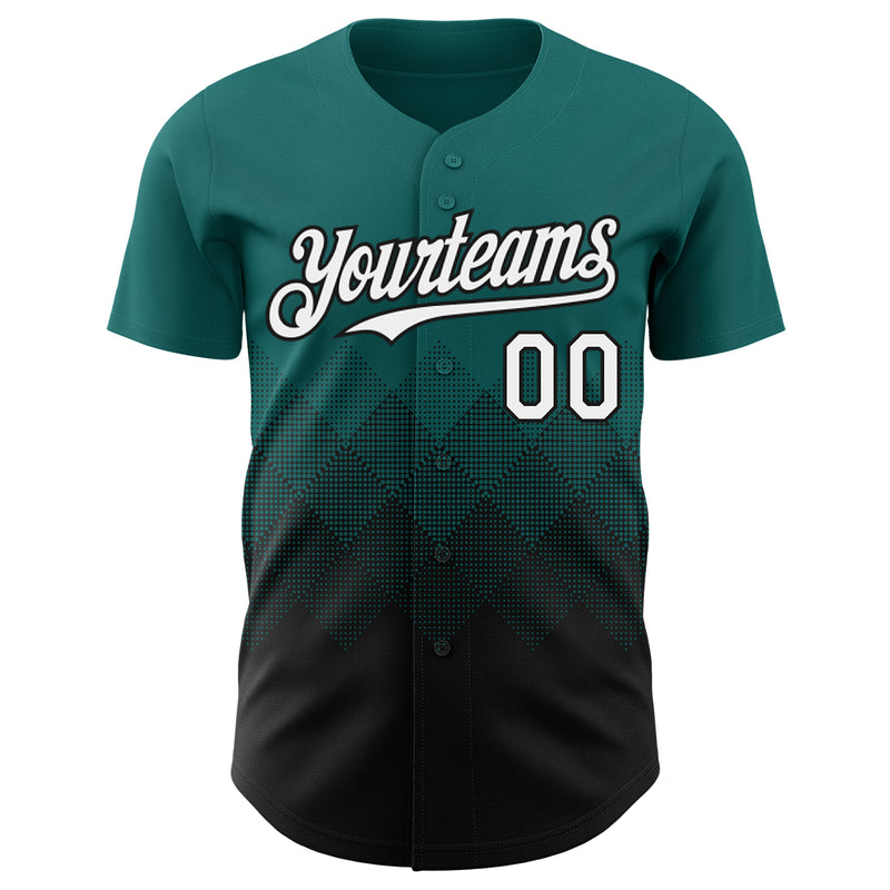 Custom Teal White-Black 3D Gradient Square Shape Authentic Baseball Jersey