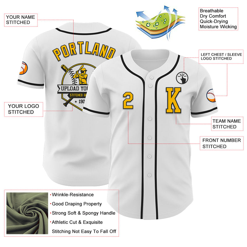 Custom White Gold-Black Authentic Baseball Jersey