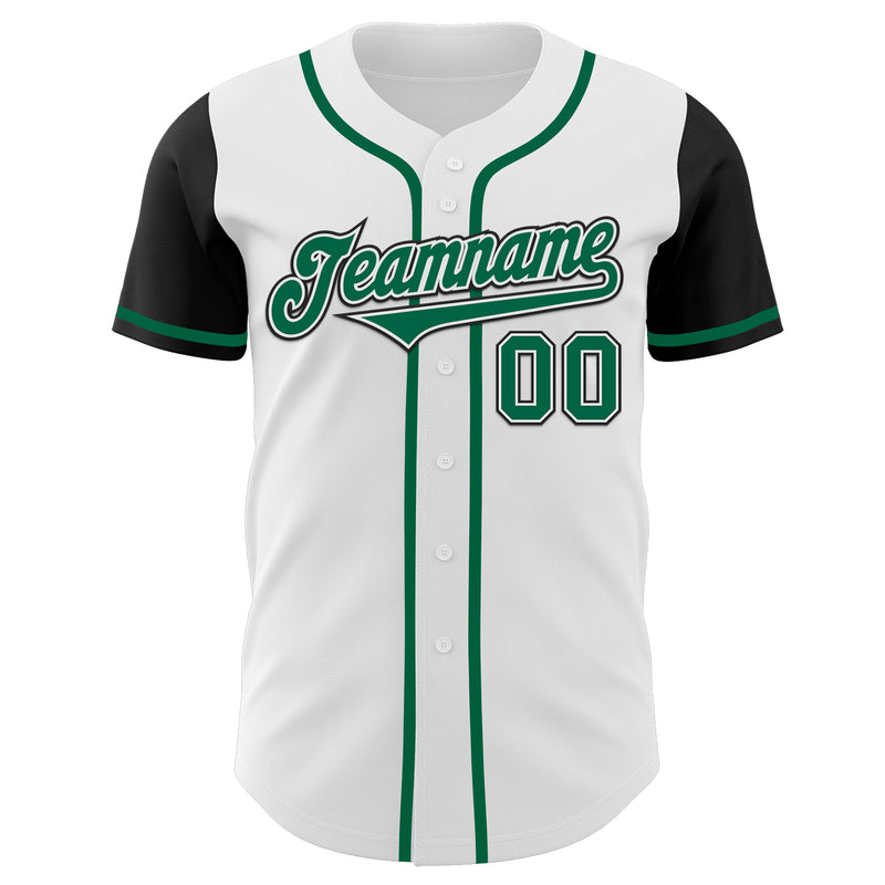 Custom White Kelly Green-Black Authentic Two Tone Baseball Jersey