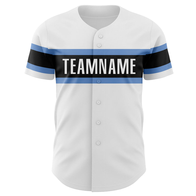 Custom White Powder Blue-Black Authentic Baseball Jersey