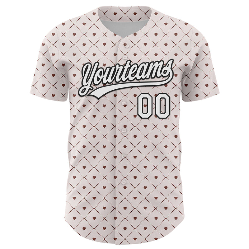 Custom White Black 3D Love Heart Valentine's Day Authentic Baseball Jersey