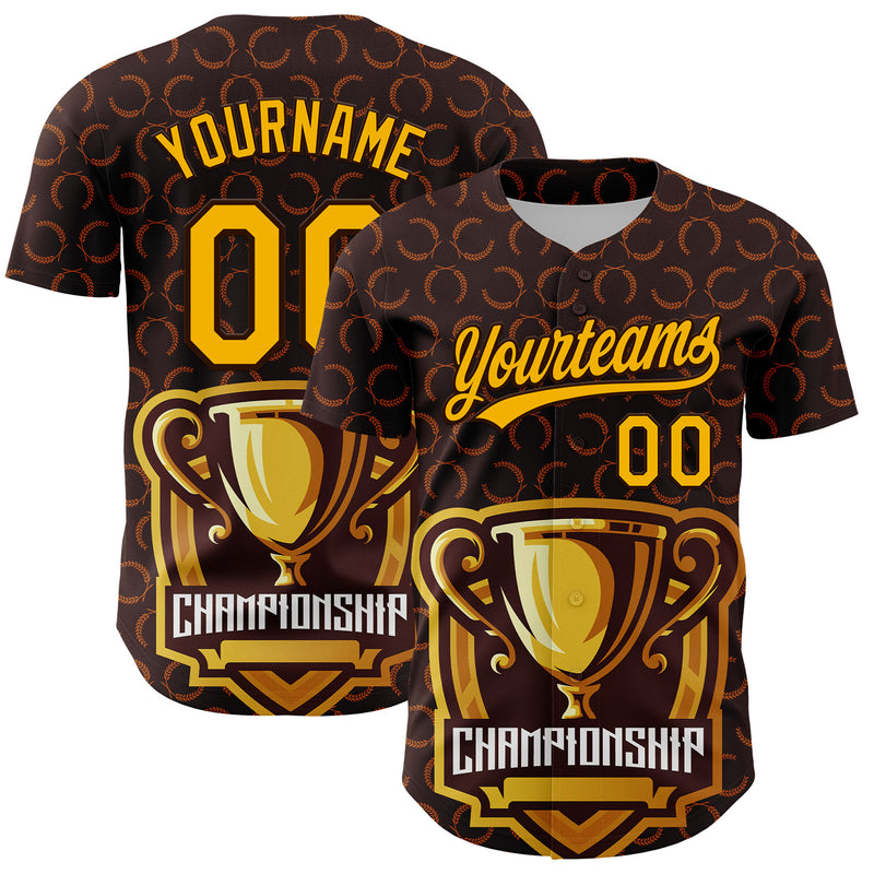 Custom Brown Gold 3D Pattern Design Champion Trophy Authentic Baseball Jersey