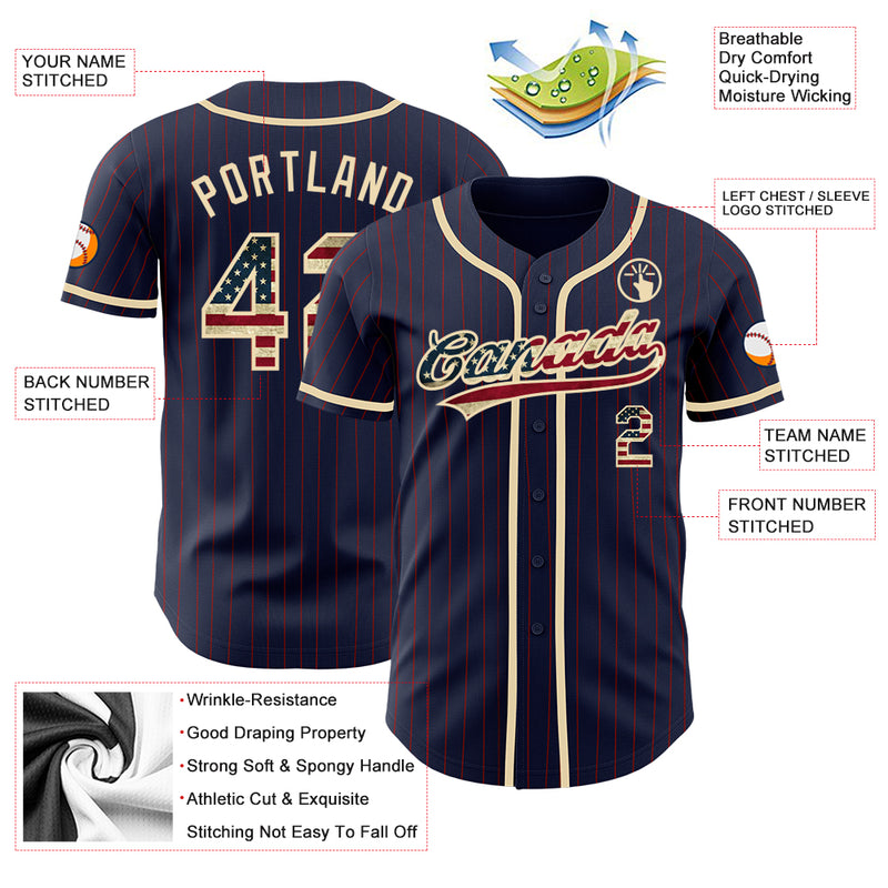 Custom Navy Red Pinstripe Vintage USA Flag-City Cream Authentic Baseball Jersey