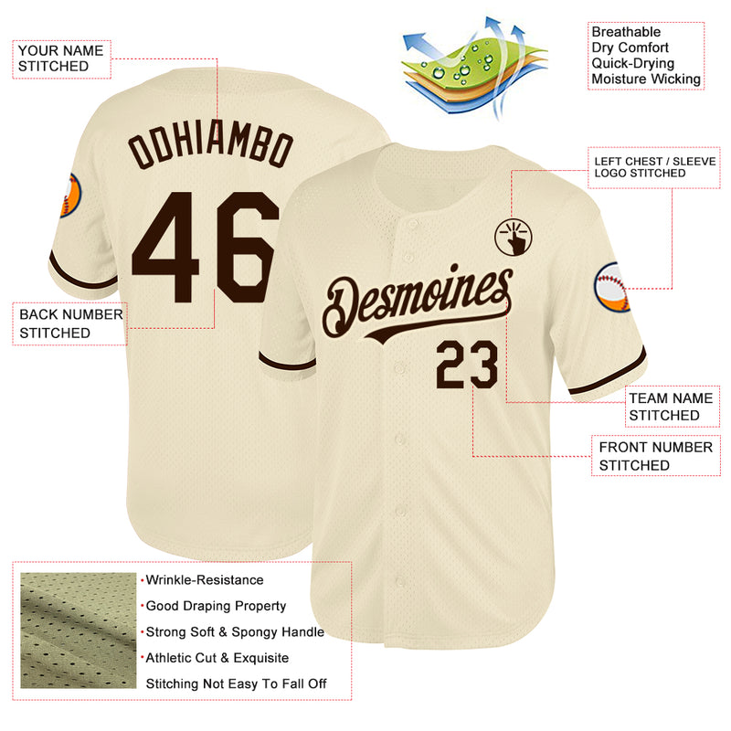 Custom Cream Brown Mesh Authentic Throwback Baseball Jersey