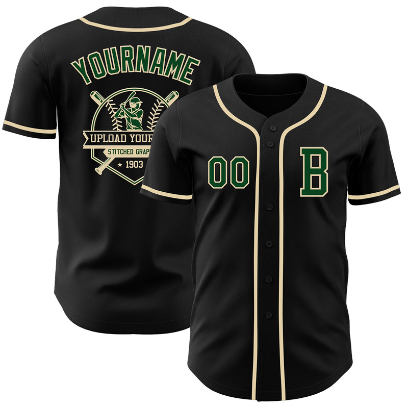 Custom Black Green-Cream Authentic Baseball Jersey