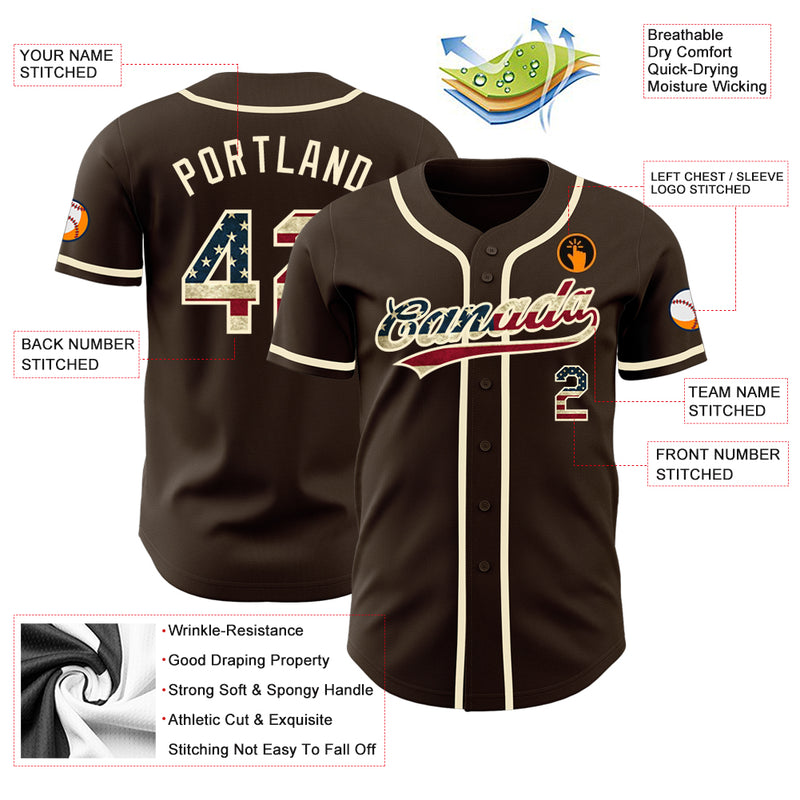Custom Brown Vintage USA Flag-Cream Authentic Baseball Jersey