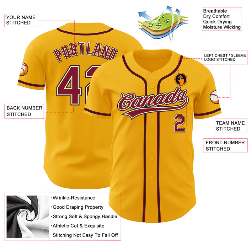 Custom Gold Crimson Cream-Black Authentic Baseball Jersey