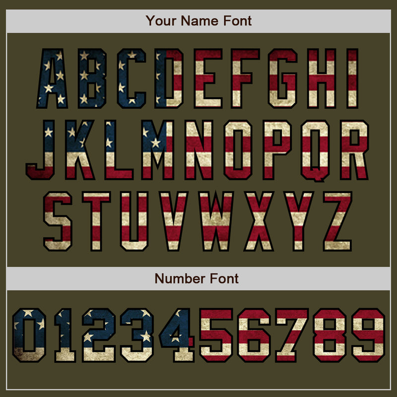 Custom Olive Vintage USA Flag Cream-Black Pinstripe Authentic Split Fashion Salute To Service Baseball Jersey