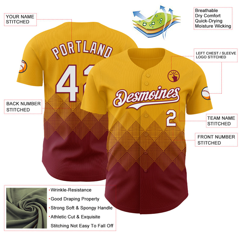 Custom Gold White-Crimson 3D Gradient Square Shape Authentic Baseball Jersey
