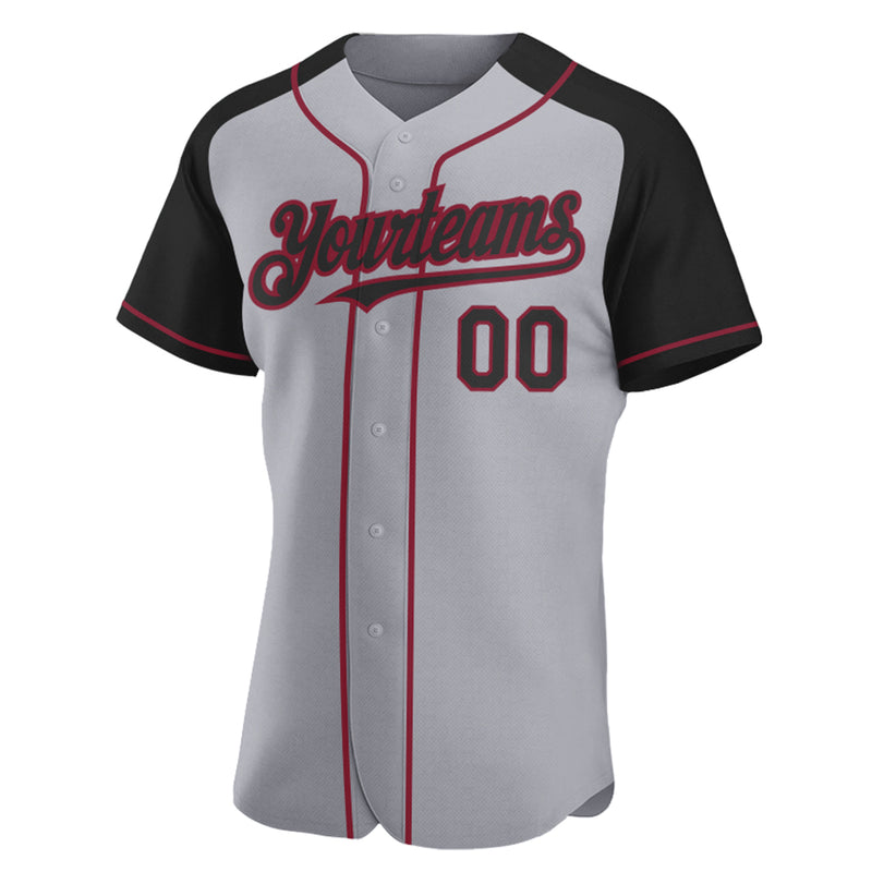 Custom Gray Black-Crimson Authentic Raglan Sleeves Baseball Jersey