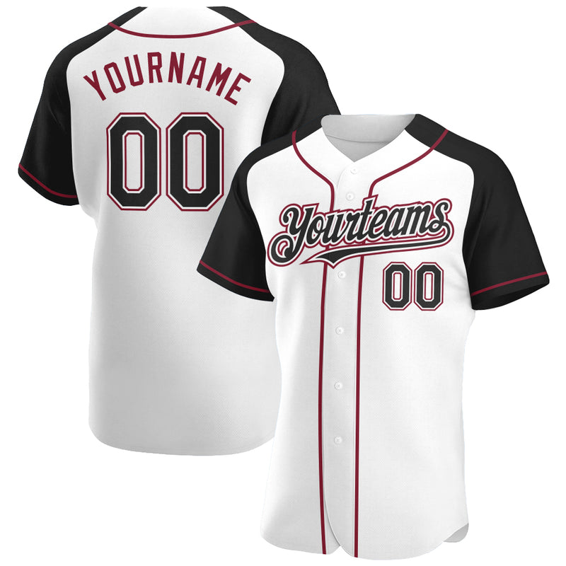 Custom White Black-Crimson Authentic Raglan Sleeves Baseball Jersey