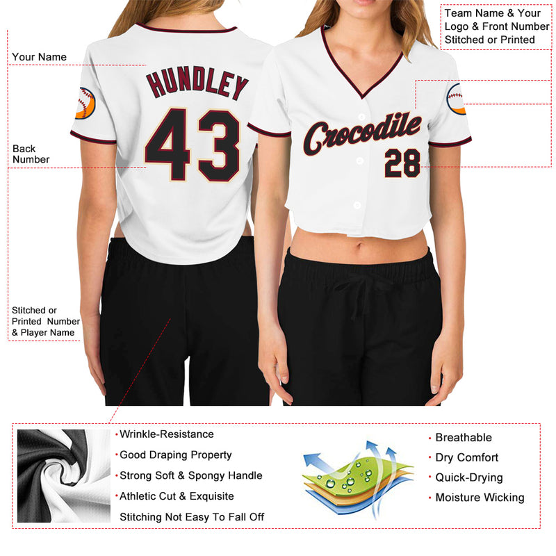 Custom Women's White Black Crimson-Cream V-Neck Cropped Baseball Jersey