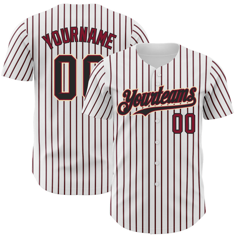 Custom White (Black Crimson Pinstripe) Black Crimson-Cream Authentic Baseball Jersey