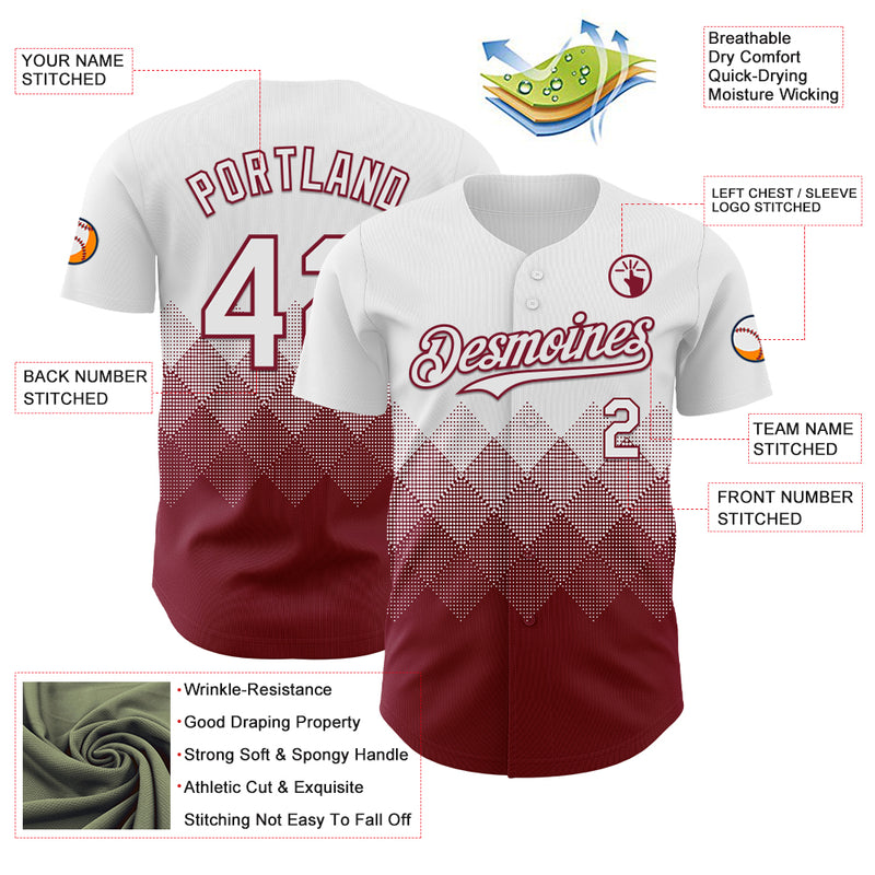 Custom White Crimson 3D Gradient Square Shape Authentic Baseball Jersey