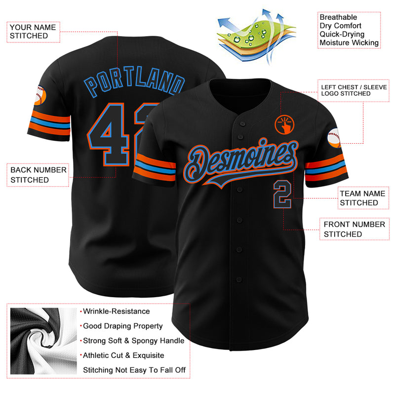 Custom Black Electric Blue-Orange Authentic Baseball Jersey