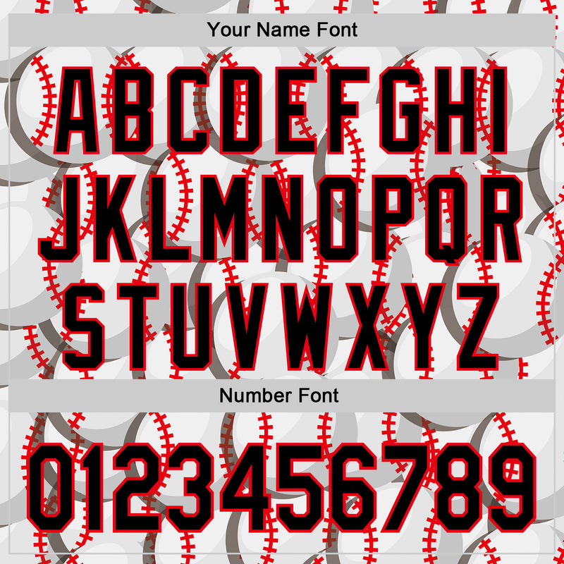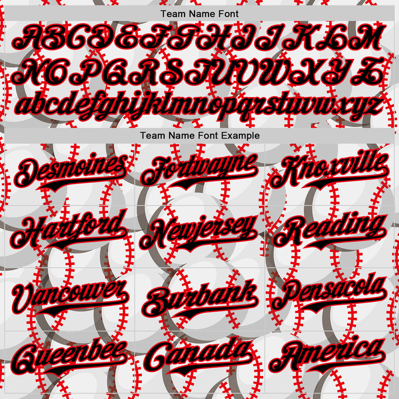 Custom White Black-Fire Red Comic Doodle Ballgame 3D Pattern Design Authentic Baseball Jersey