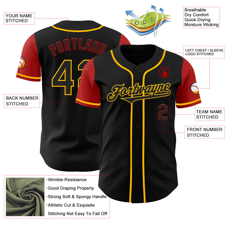 Custom Black Gold-Red Authentic Two Tone Baseball Jersey