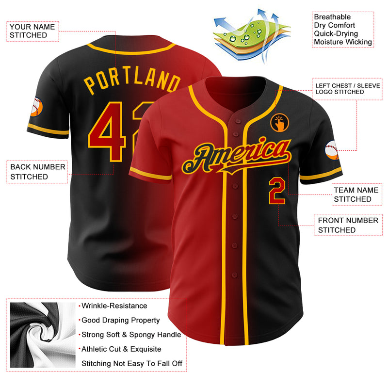 Custom Black Red-Gold Authentic Gradient Fashion Baseball Jersey