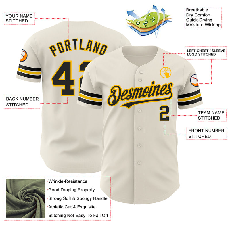 Custom Cream Black-Gold Authentic Baseball Jersey