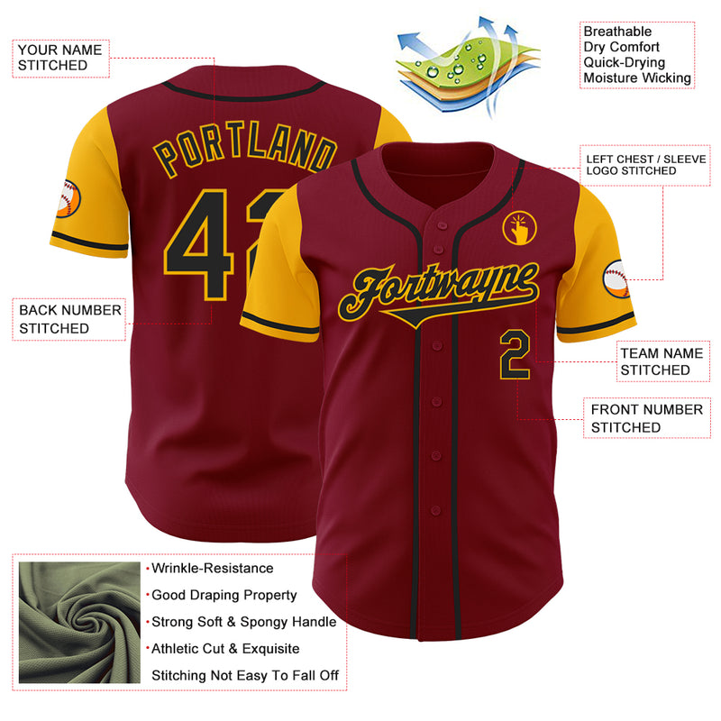 Custom Crimson Black-Gold Authentic Two Tone Baseball Jersey