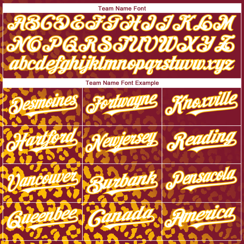 Custom Crimson White-Gold 3D Pattern Design Leopard Print Fade Fashion Authentic Baseball Jersey