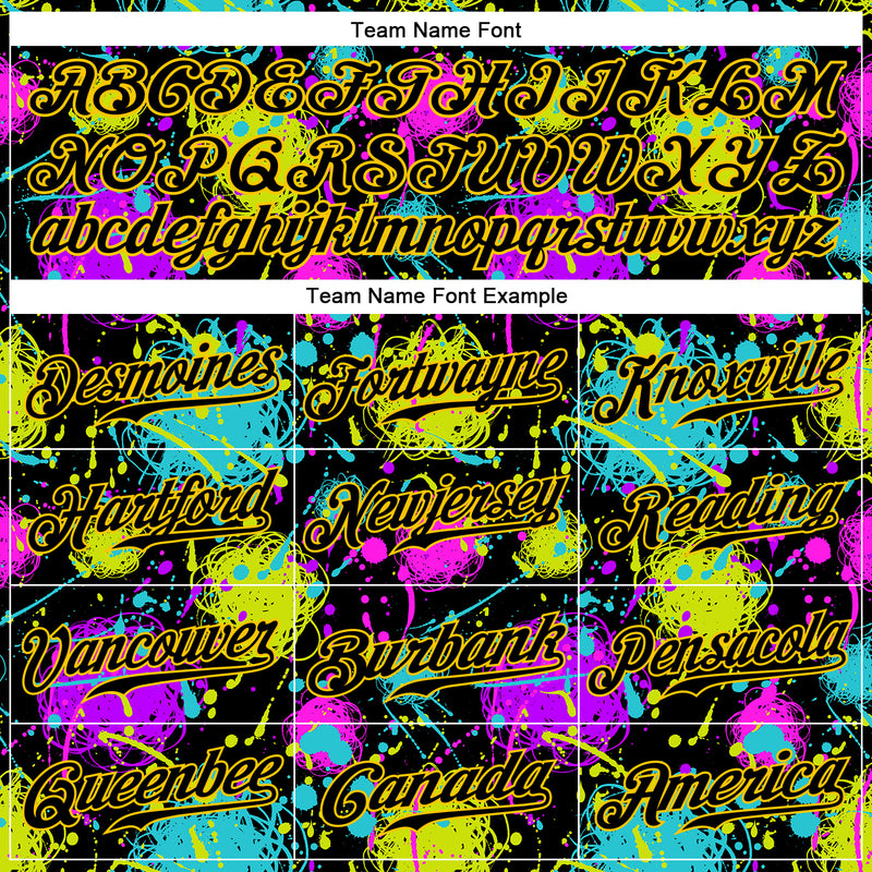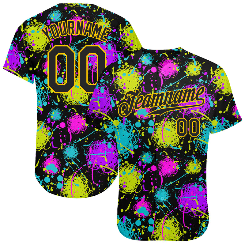 Custom Graffiti Pattern Black-Gold 3D Neon Splatter Authentic Baseball Jersey