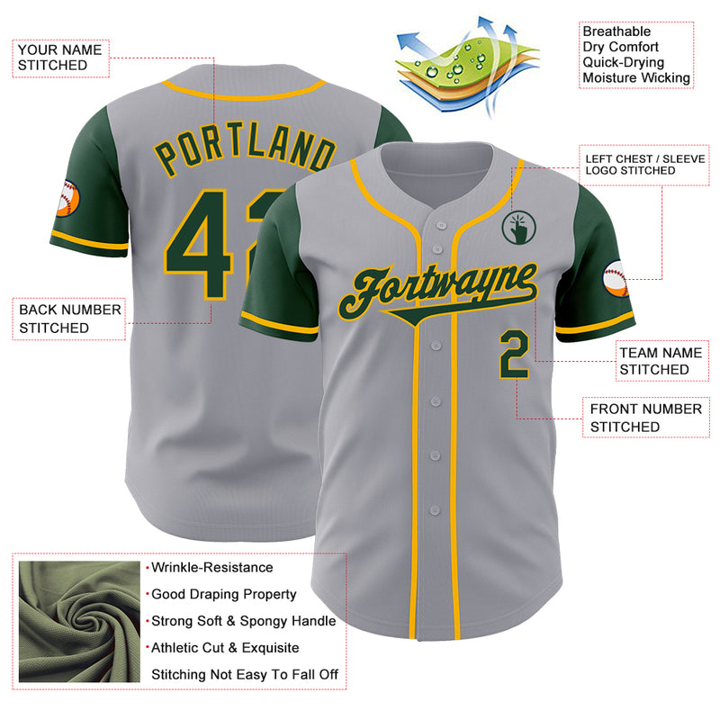 Custom Gray Green-Gold Authentic Two Tone Baseball Jersey