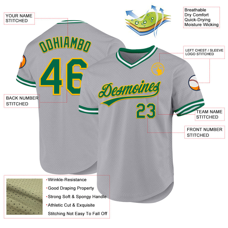 Custom Gray Kelly Green-Gold Authentic Throwback Baseball Jersey