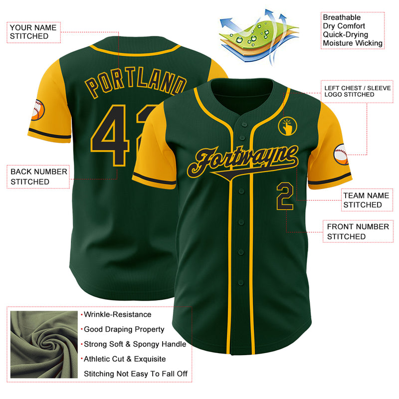 Custom Green Black-Gold Authentic Two Tone Baseball Jersey