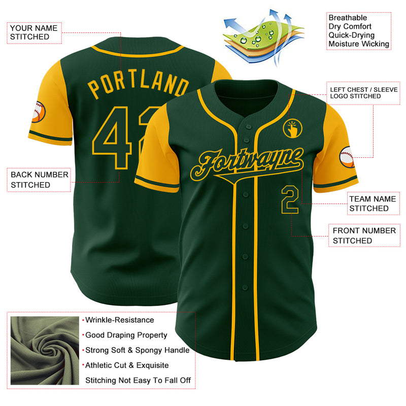 Custom Green Gold Authentic Two Tone Baseball Jersey