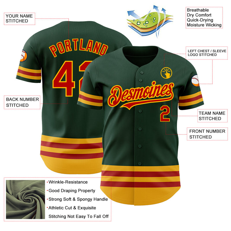 Custom Green Red-Gold Line Authentic Baseball Jersey
