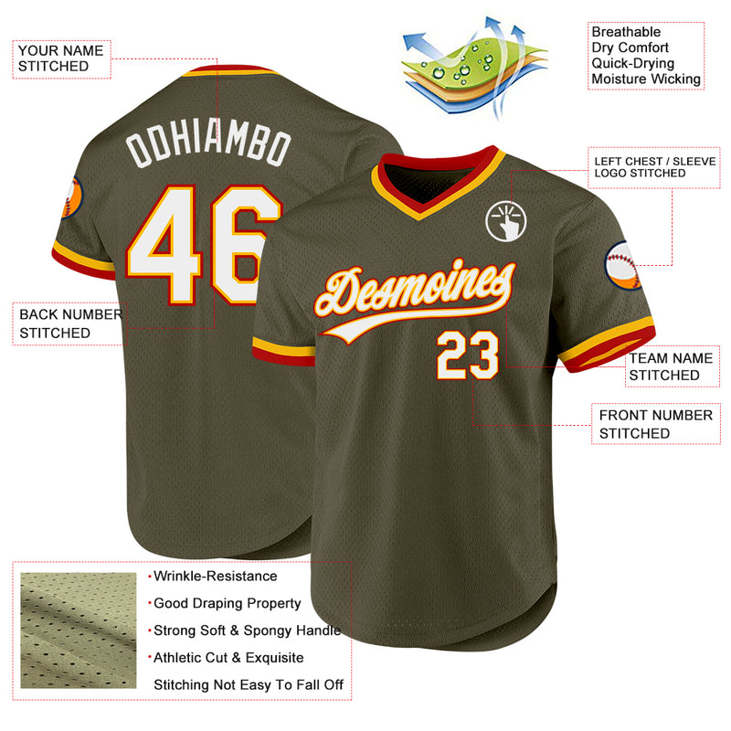 Custom Olive Gold-Red Authentic Throwback Salute To Service Baseball Jersey