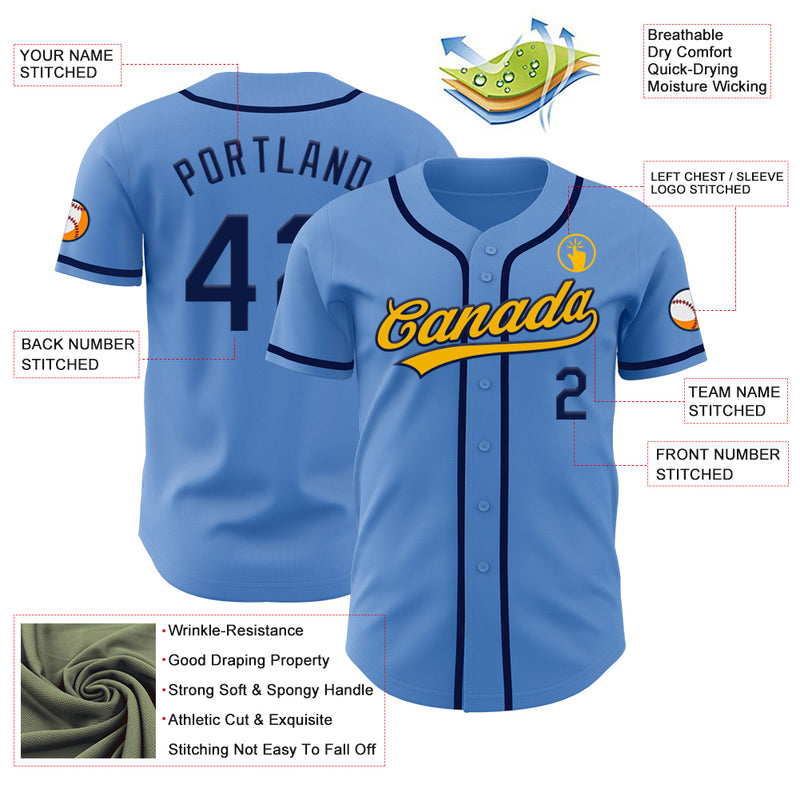Custom Powder Blue Navy-Gold Authentic Baseball Jersey