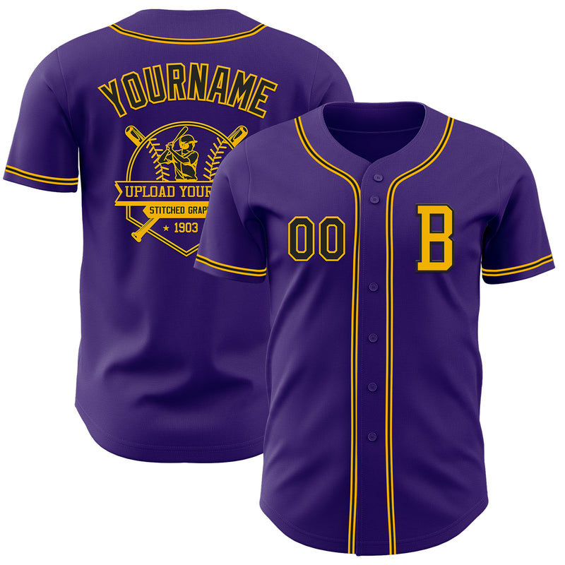 Custom Purple Black-Gold Authentic Baseball Jersey
