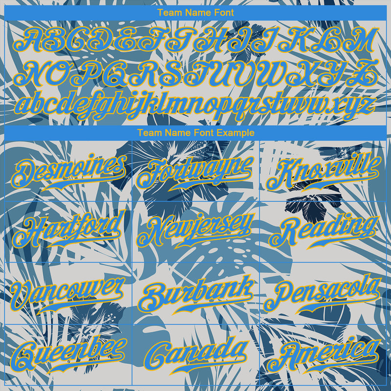 Custom White Electric Blue-Gold 3D Pattern Design Hawaii Palm Leaves And Flowers Authentic Baseball Jersey