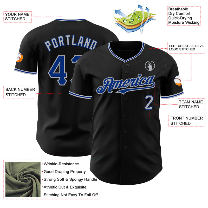 Custom Black Royal-Gray Authentic Baseball Jersey