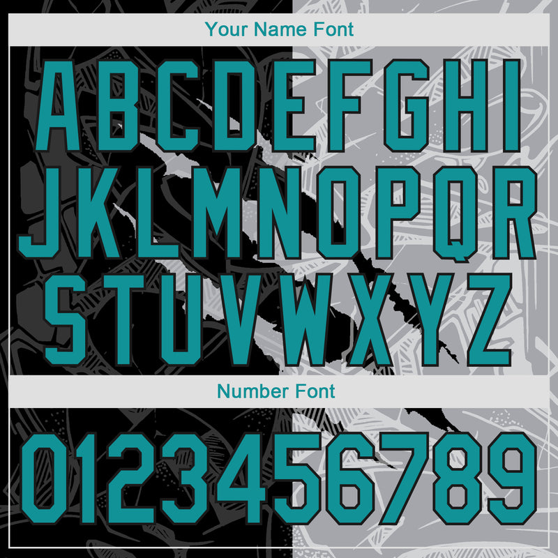 Custom Graffiti Pattern Teal Gray-Black 3D Scratch Authentic Baseball Jersey