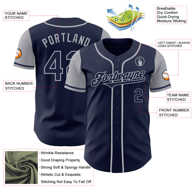 Custom Navy Gray Authentic Two Tone Baseball Jersey