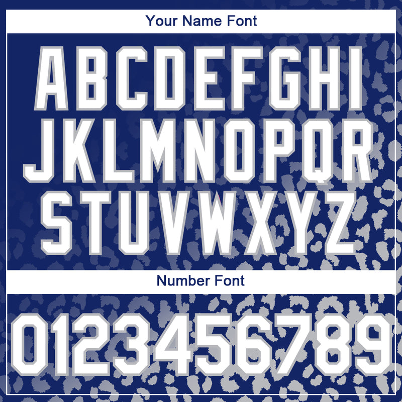 Custom Royal White-Gray 3D Pattern Design Leopard Print Fade Fashion Authentic Baseball Jersey