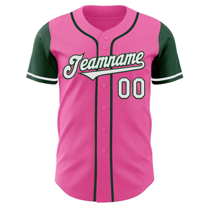 Custom Pink White-Green Authentic Two Tone Baseball Jersey