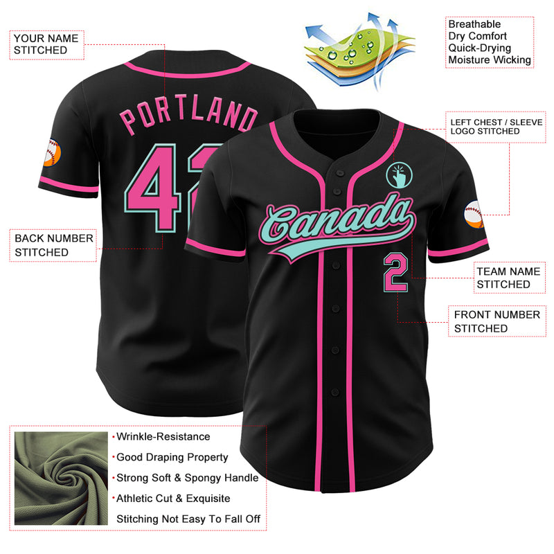 Custom Black Pink-Ice Blue Authentic Baseball Jersey