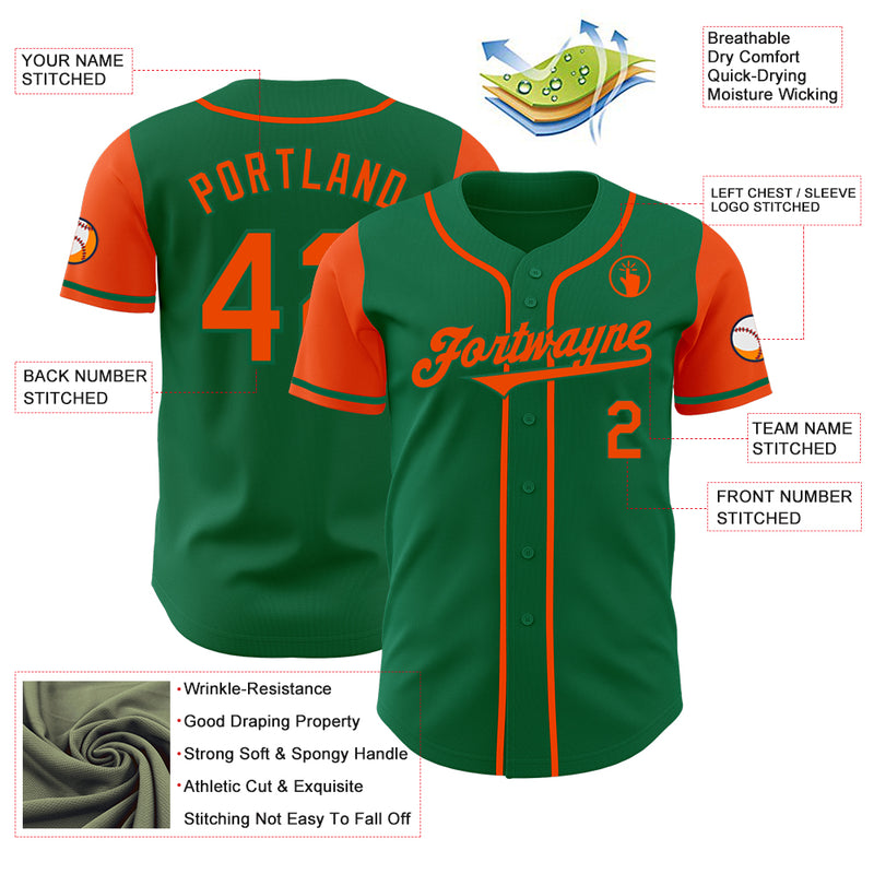 Custom Kelly Green Orange Authentic Two Tone Baseball Jersey