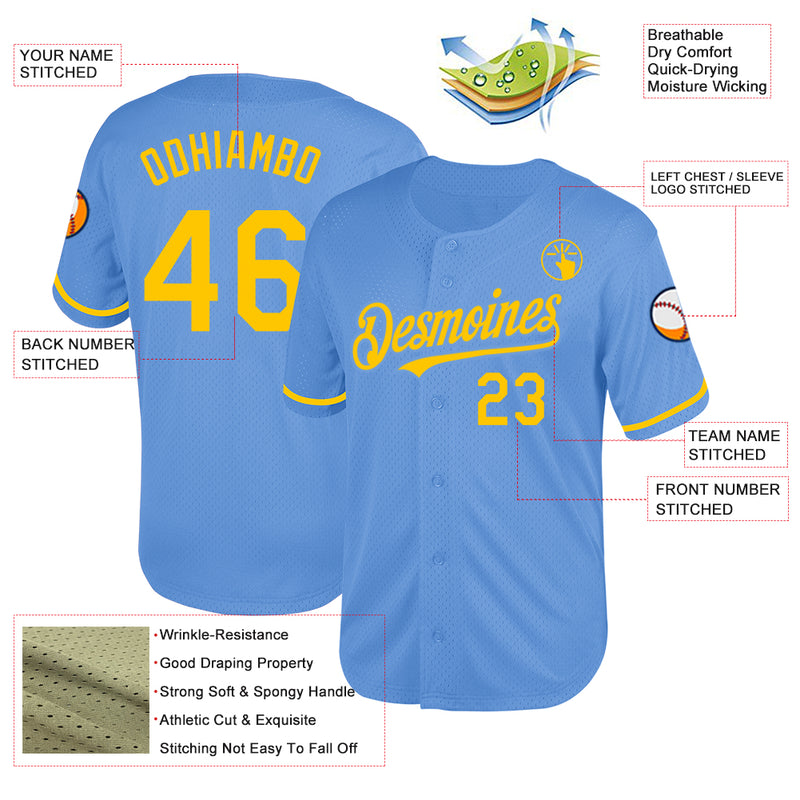 Custom Light Blue Yellow Mesh Authentic Throwback Baseball Jersey