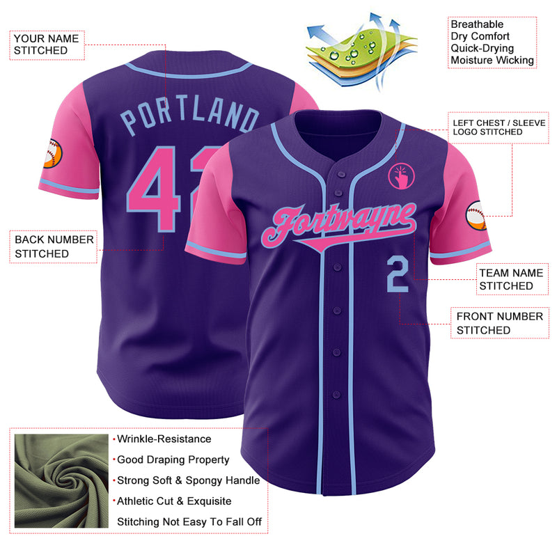 Custom Purple Pink-Light Blue Authentic Two Tone Baseball Jersey