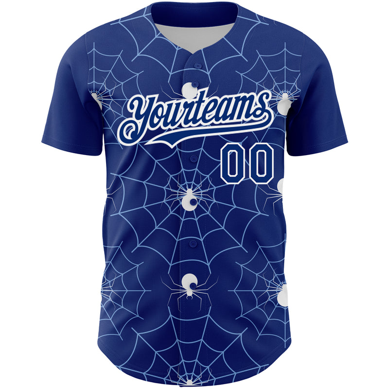 Custom Royal Light Blue-White 3D Pattern Design Spider Web Authentic Baseball Jersey