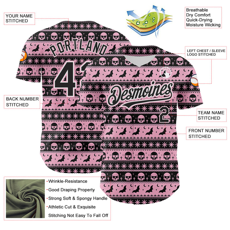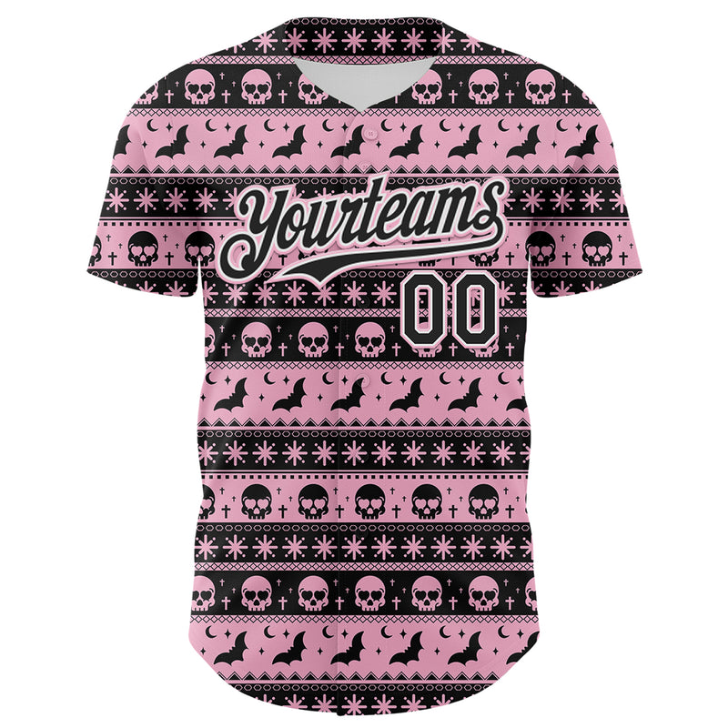 Custom Black Light Pink-White 3D Gothic Skull Authentic Baseball Jersey