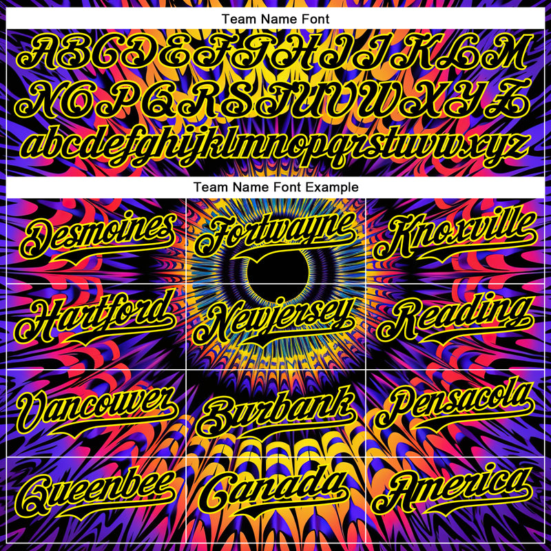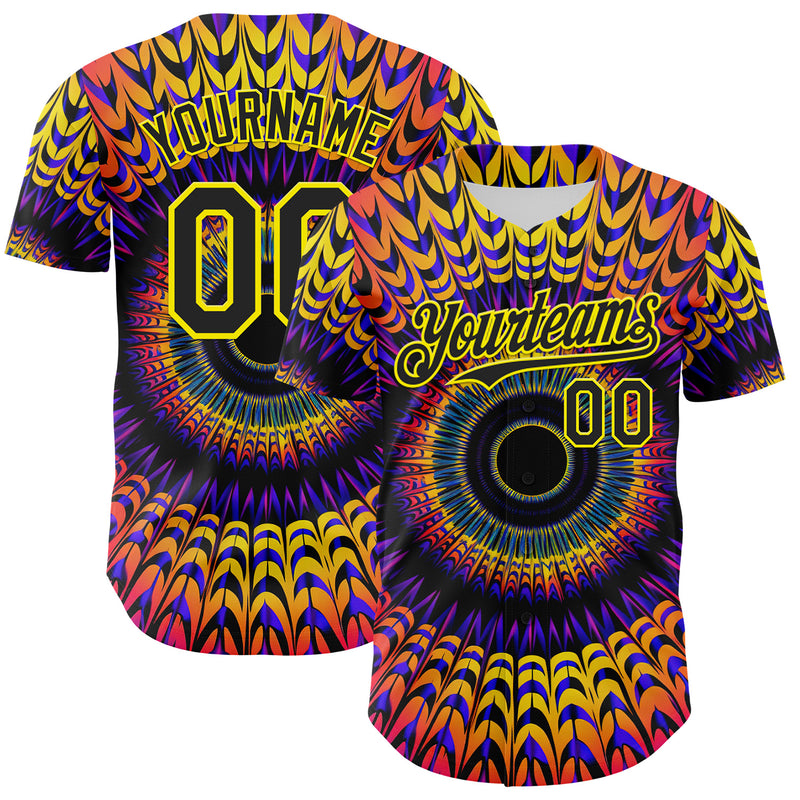 Custom Black Light Yellow 3D Pattern Design Rave Psychedelic Fractal Style Authentic Baseball Jersey