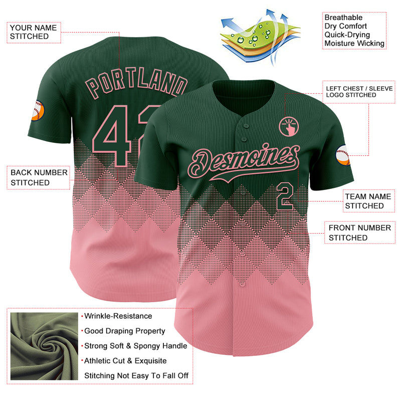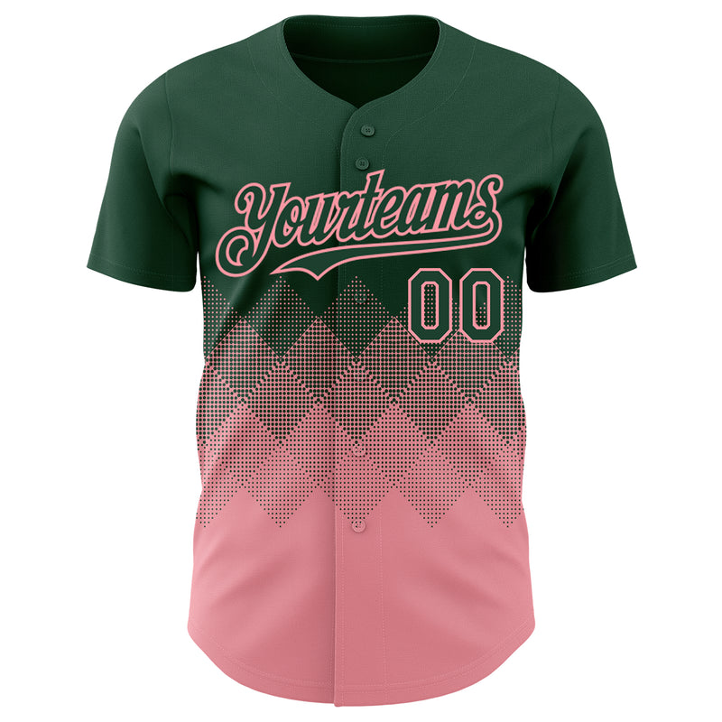 Custom Green Medium Pink 3D Gradient Square Shape Authentic Baseball Jersey
