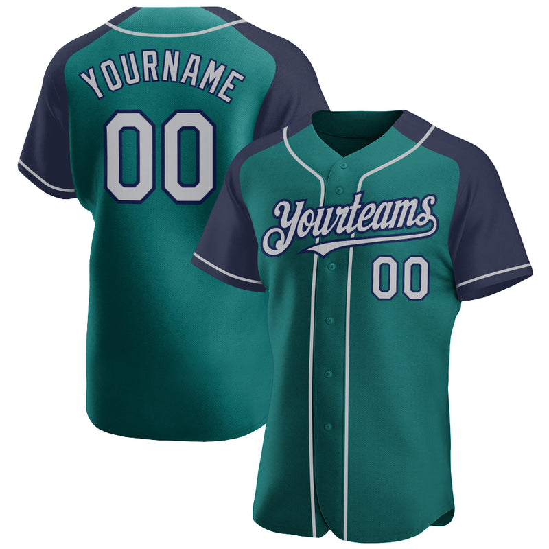 Custom Teal Gray-Navy Authentic Raglan Sleeves Baseball Jersey
